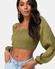 Slow the motion, and kick your style up a notch. Top up your game with the Elina waist cinching shirred detail crop top featuring long sleeves with elasticated cuffs, square neckline, and back. Pair with mom jeans and chunky boot heels!
