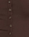 The Elmira top in a sheer khaki knit fabric. Featuring cap sleeves, a centre front button placket with pearlescent buttons. Complete in a regular length and tight fit.