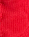 The Harpan top in an ivory ribbed knit fabric, features a wide scoop neckline with three quarter length sleeves. Finished with rosette detailing down the centre front.