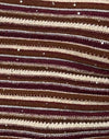The Husan hot pants in striped metallic gauzy knit feature a micro bodycon fit with a thick waistband. The knit is adorned with tiny sequins throughout, creating a shimmering effect in green and brown stripes. Style with the Lorie halterneck top.