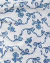 Jatmi Corset Top in White and Blue Ribbon Print