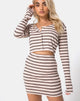 Kimmy Bodycon Skirt in Rib Stripe Cream Black and Tan