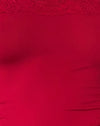 In a baby pink slinky fabric, the Nesel top features a bodycon design and a bardot neckline with a dropped lace trim. Pair with our Nidya skirt.