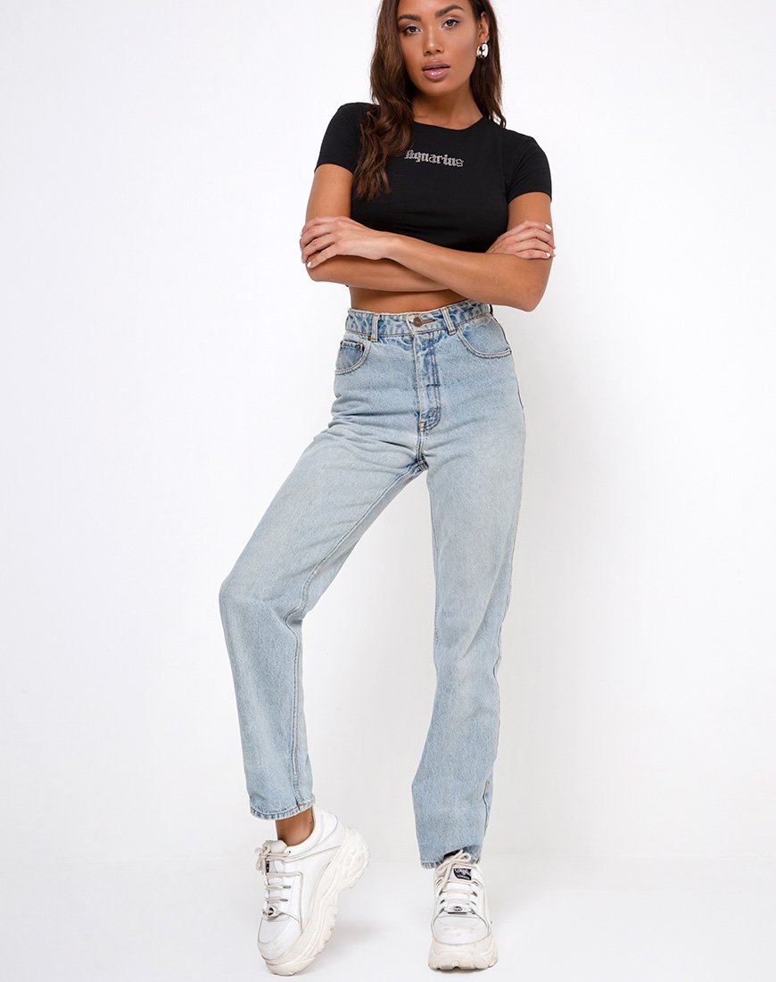 Tiney Crop Tee in Black 'Aquarius' Diamante
